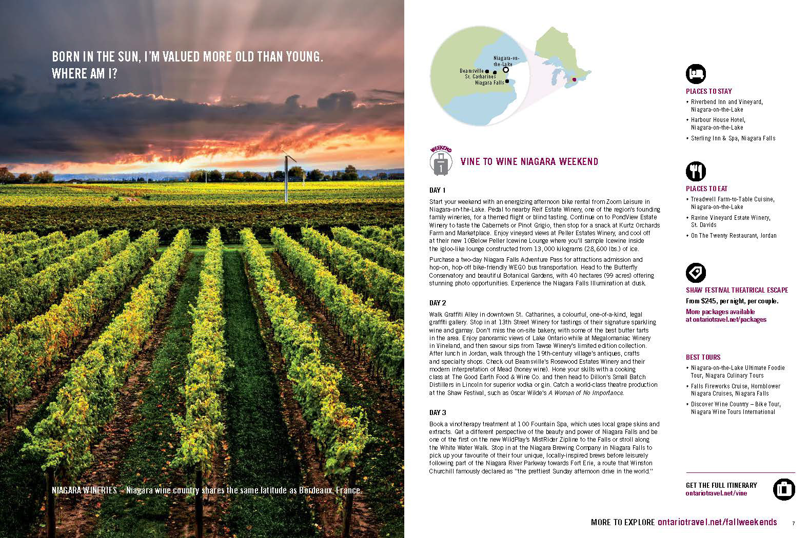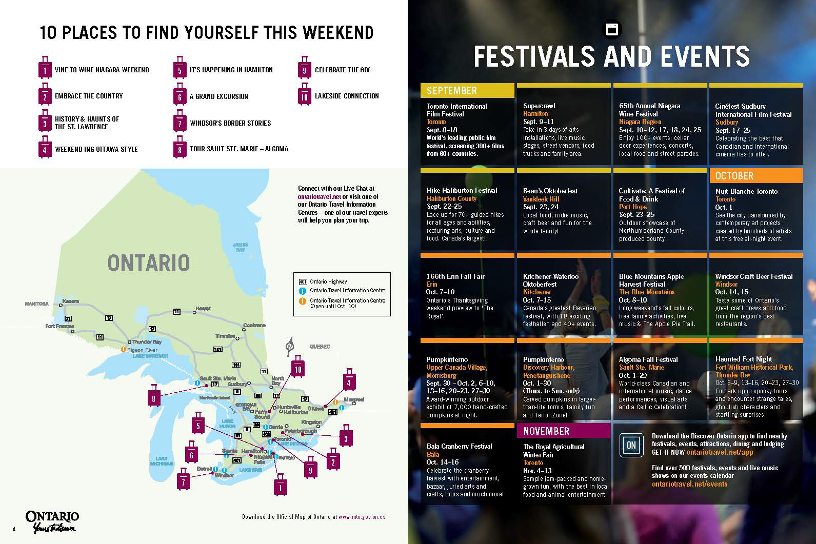 OTMPC releases a quarterly magazine that covers new and exciting places to visit in Ontario, designed by an out-of-house agency. This quarter, I was given the opportunity to create the magazine in-house due to my strong editorial skillsets; a first for the OTMPC. This enabled the OTMPC to reallocate production costs to other campaigns. There were over 1.5 million copies printed, and it is in market all across Ontario, Quebec, and in the US.